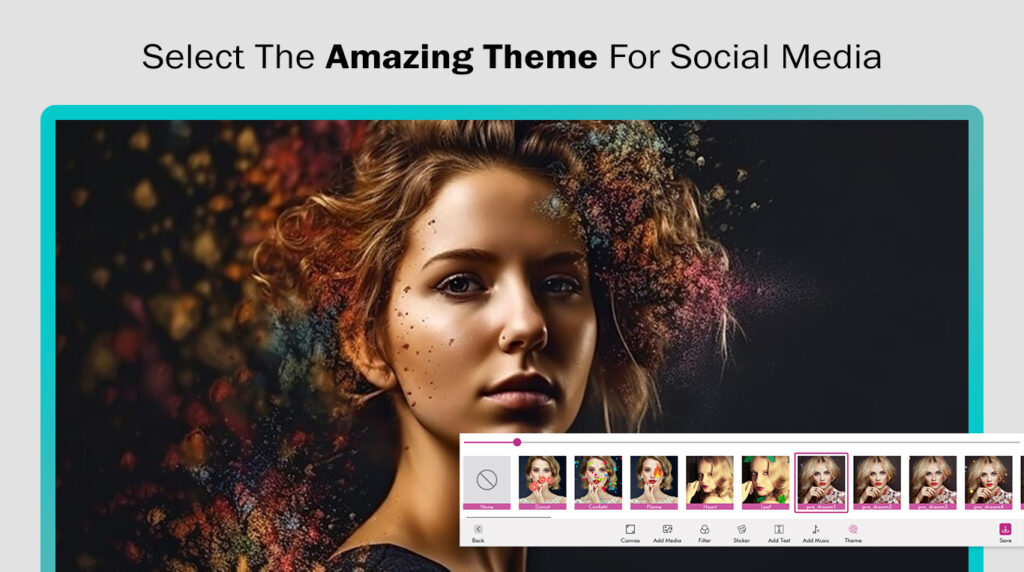 - Enhance your slideshow by adding effective themes from a variety of options available in the application using the ‘Theme’ icon.
