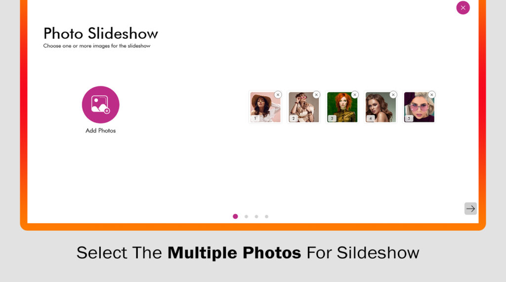 - In the ‘Add Photos‘ section, you’ll find the slideshow option. Choose multiple photos from your gallery to include in your slideshow.