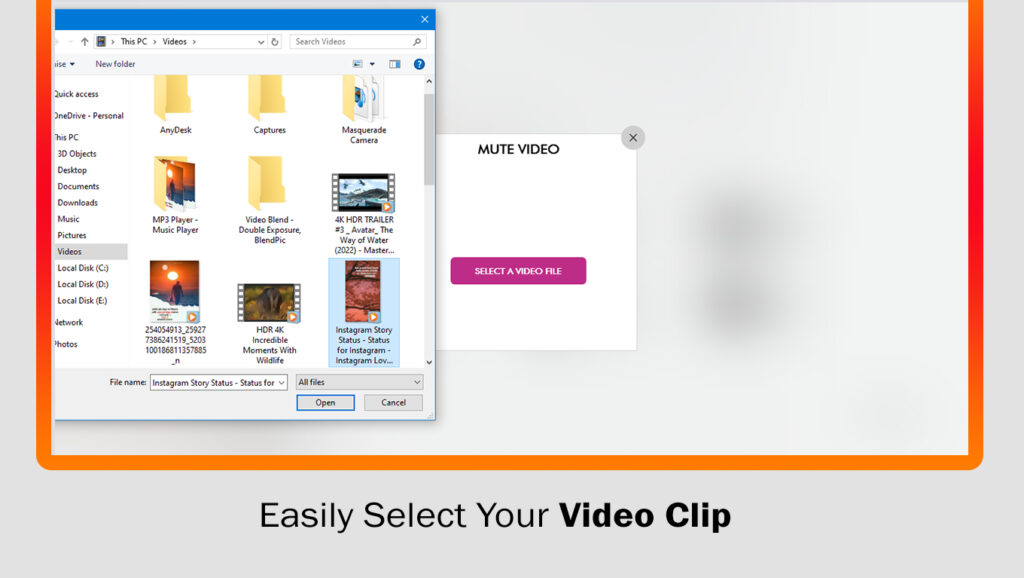 - After selecting the video, click on the ‘mute video‘ button, give your video a name, and then save your muted video.