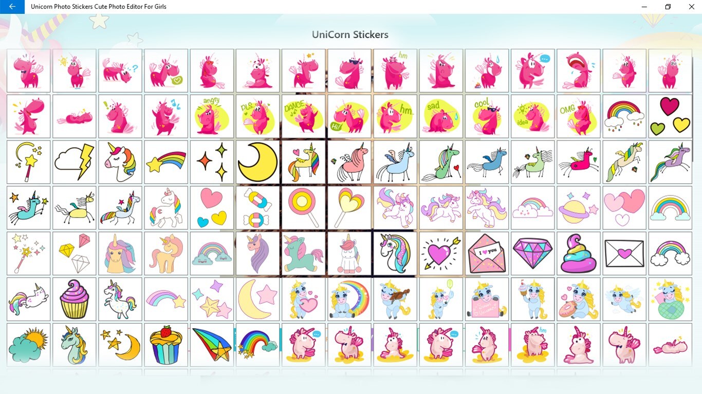 Get the latest Unicorn Photo Stickers Cute Photo Editor app on your mobile/PC. Edit photos by adding cute unicorn stickers, pony photos, baby unicorn emojis, and unicorn cupcakes. Capture selfies using the sweet camera editor and enhance them with special pink unicorns designed for girls.
